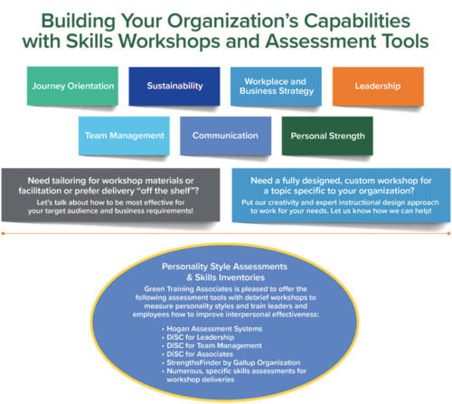 We facilitate workshops covering seven competency domain areas including: Leadership, Workplace and Business Strategy, Communication, Team Management, Personal Strength and Sustainability.