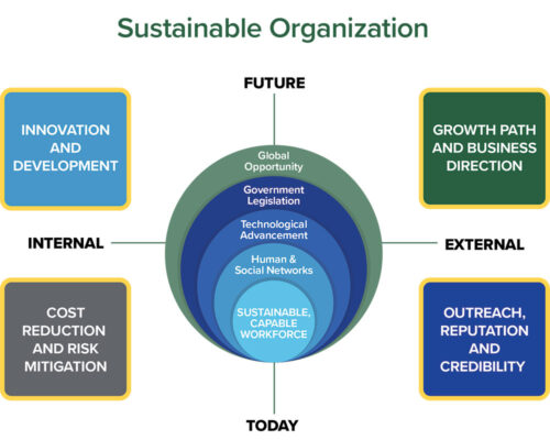 When Human Resources has a “seat at the sustainability table”, every function connects to the organization’s sustainability strategy. GTA has designed a four-quadrant model, A Sustainable Workplace Framework, as a partnership between your sustainability office and key HR leaders.