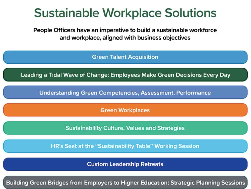 Green Training Associates will leverage our Sustainable Workplace Model to assess and plan Training, Culture, Engagement and People solutions related to: